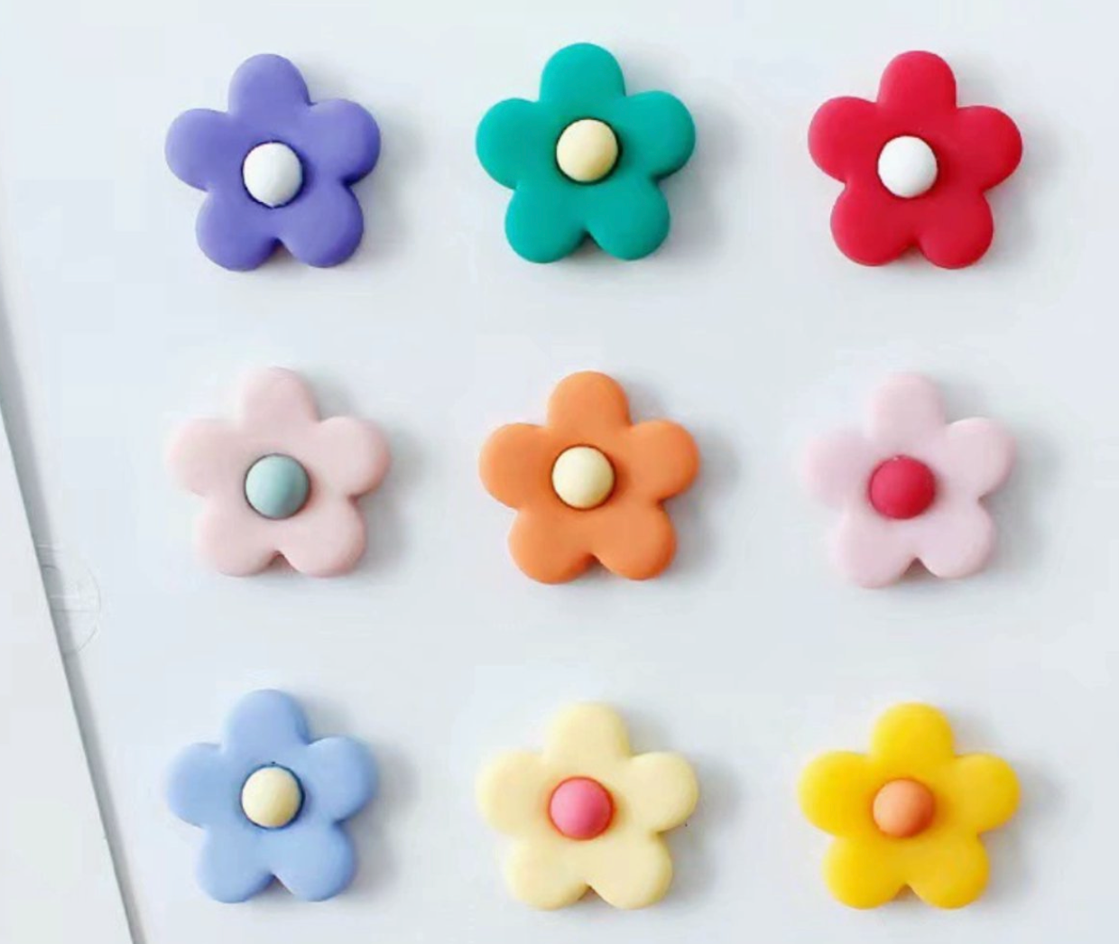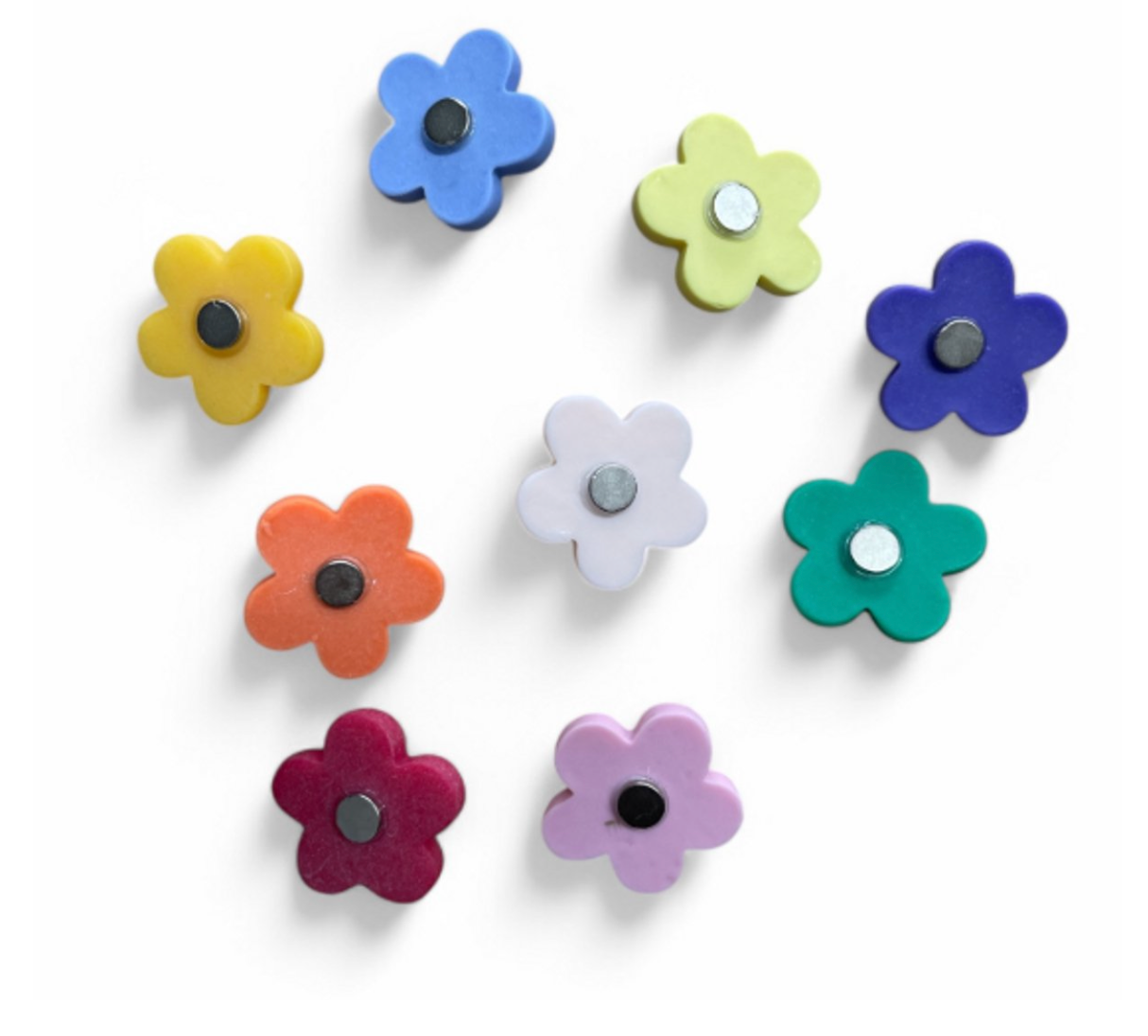Inhoud: 9 stuks Bloemen magneten 2,5 cm kleuren mix (zoals afbeelding)