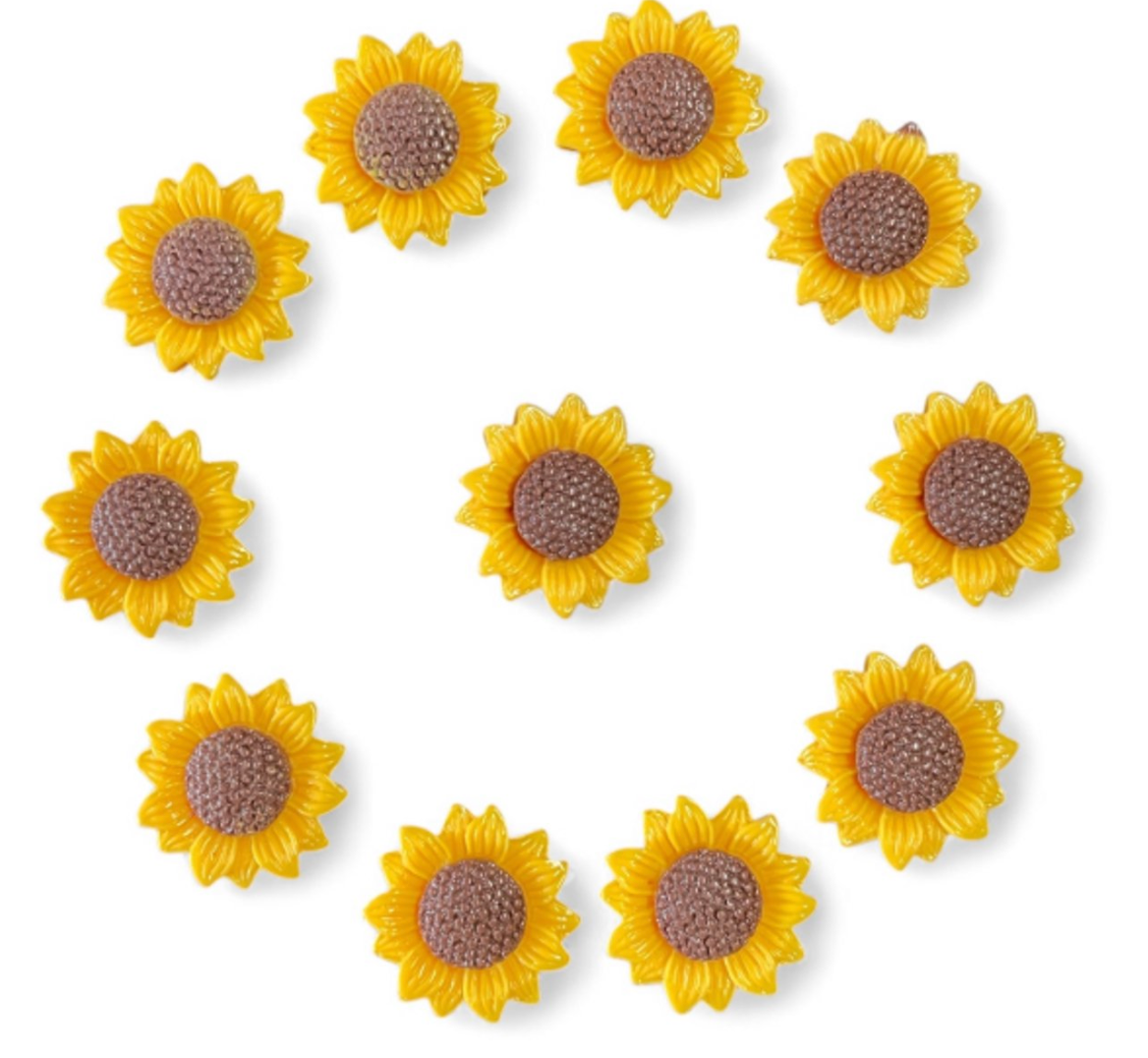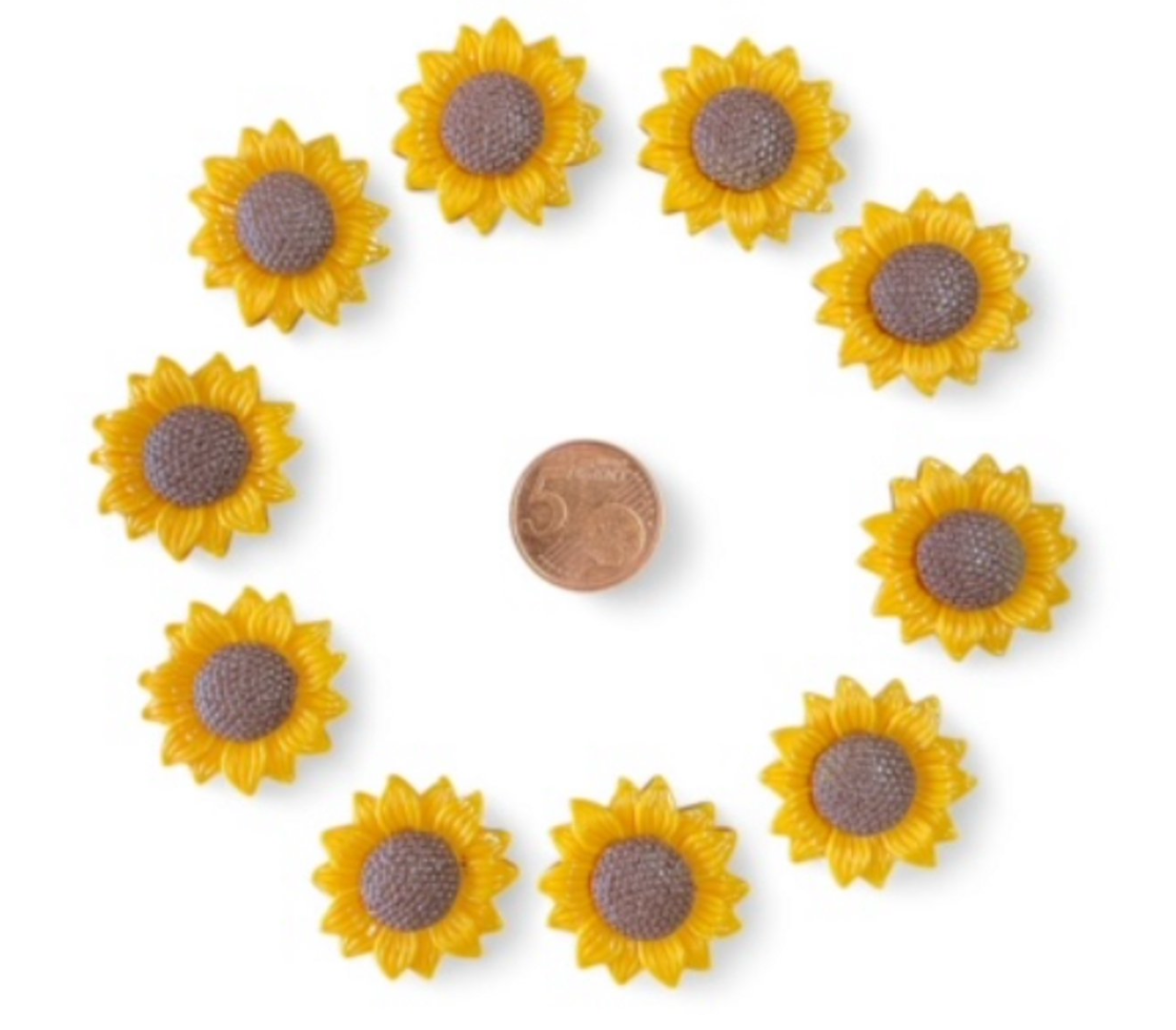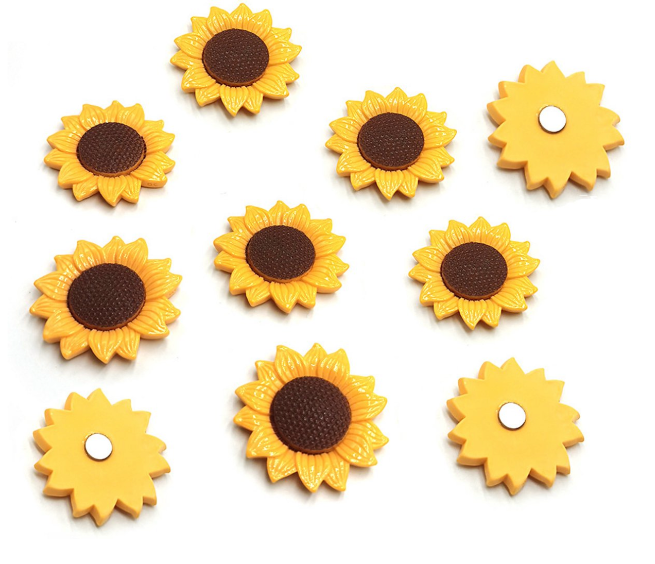 Inhoud: 10 stuks Zonnebloem magneten 3 cm (zoals afbeelding)