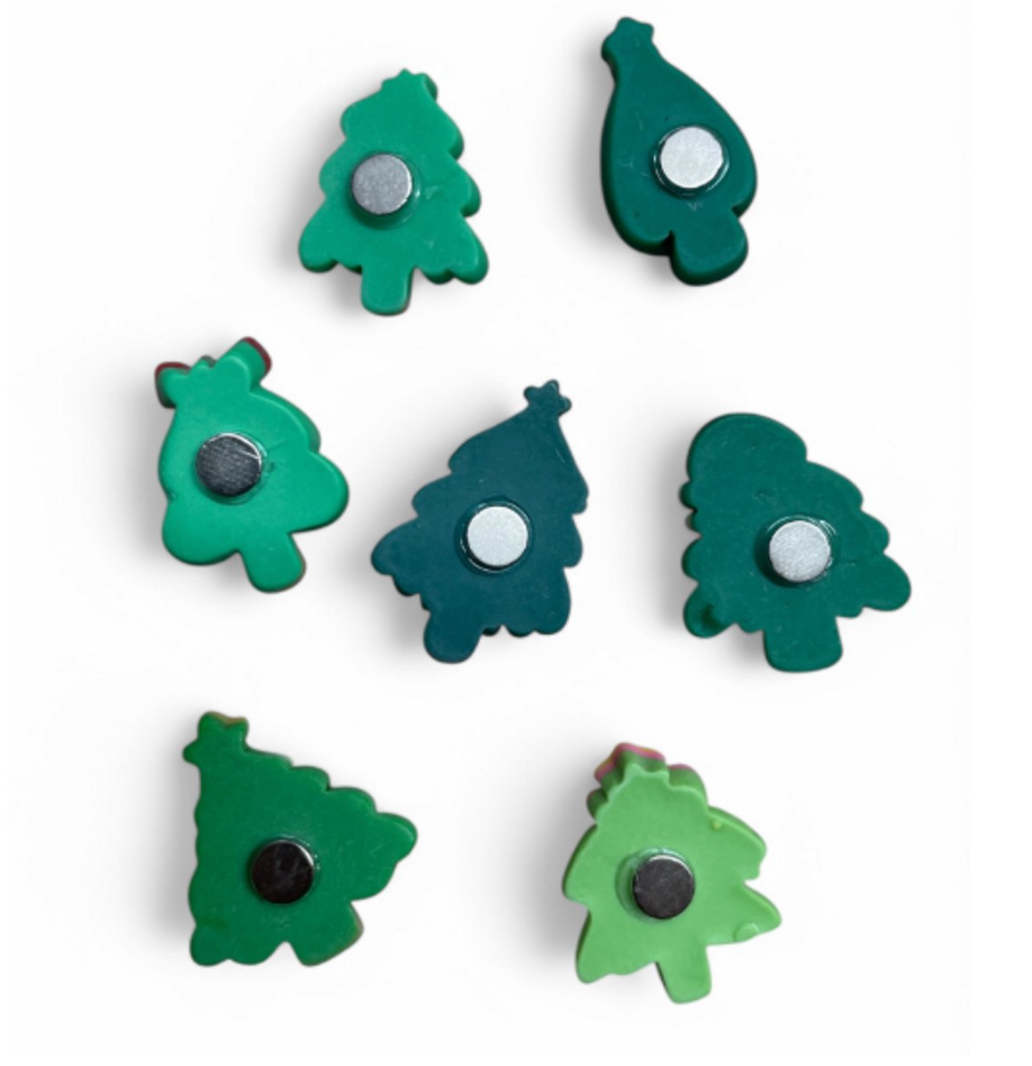 Inhoud: 7 stuks Kerstboom magneten mix (zoals afbeelding)