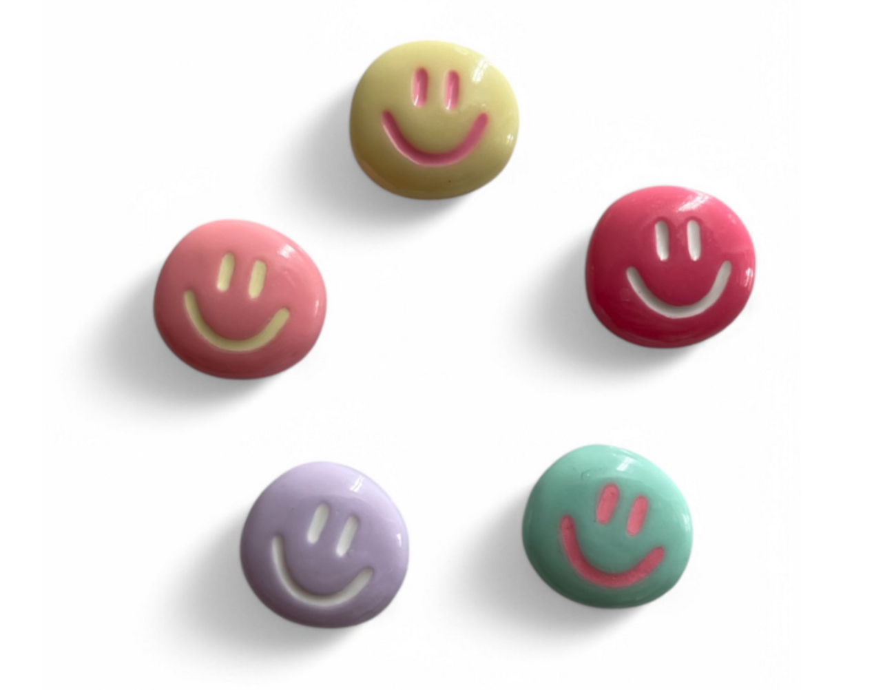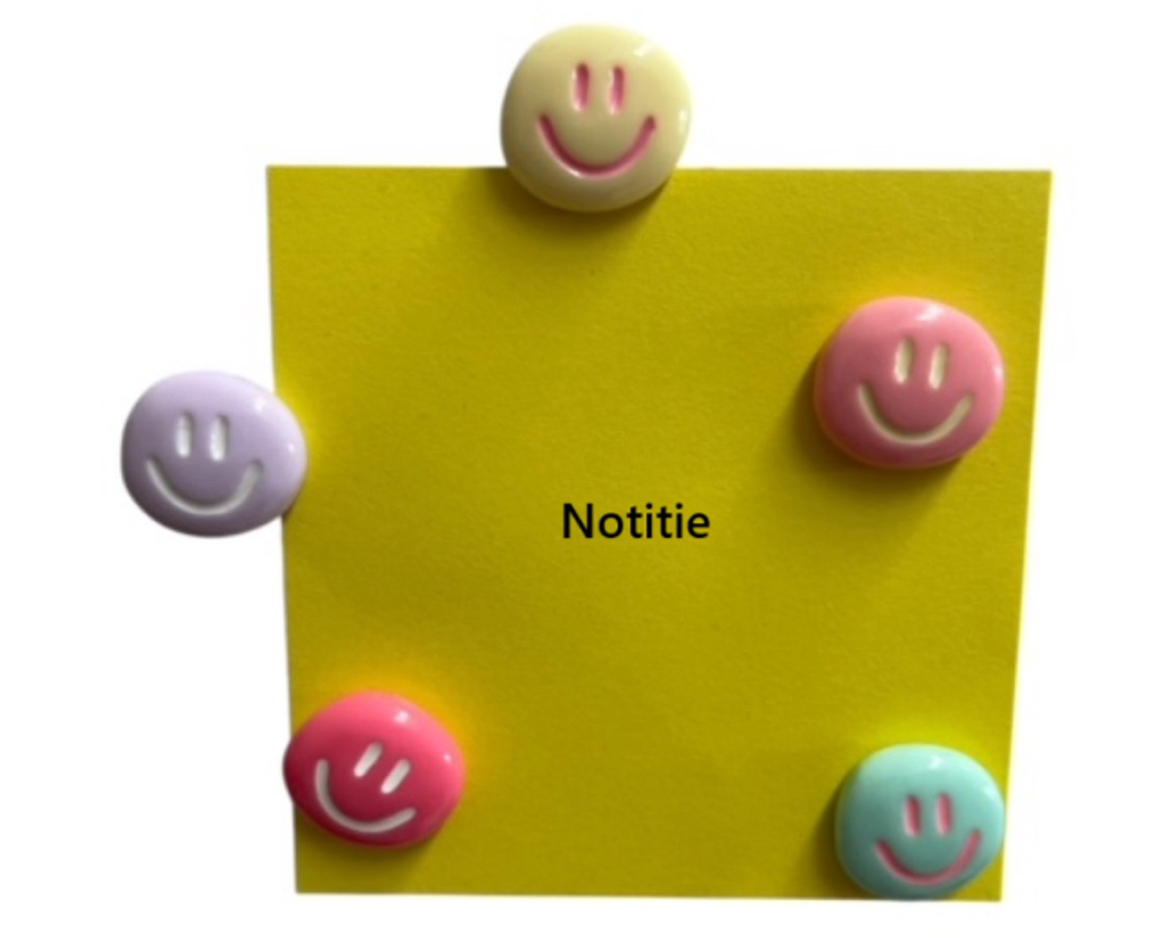 Inhoud: 5 stuks Smileys magneten 2cm kleuren mix (zoals afbeelding)