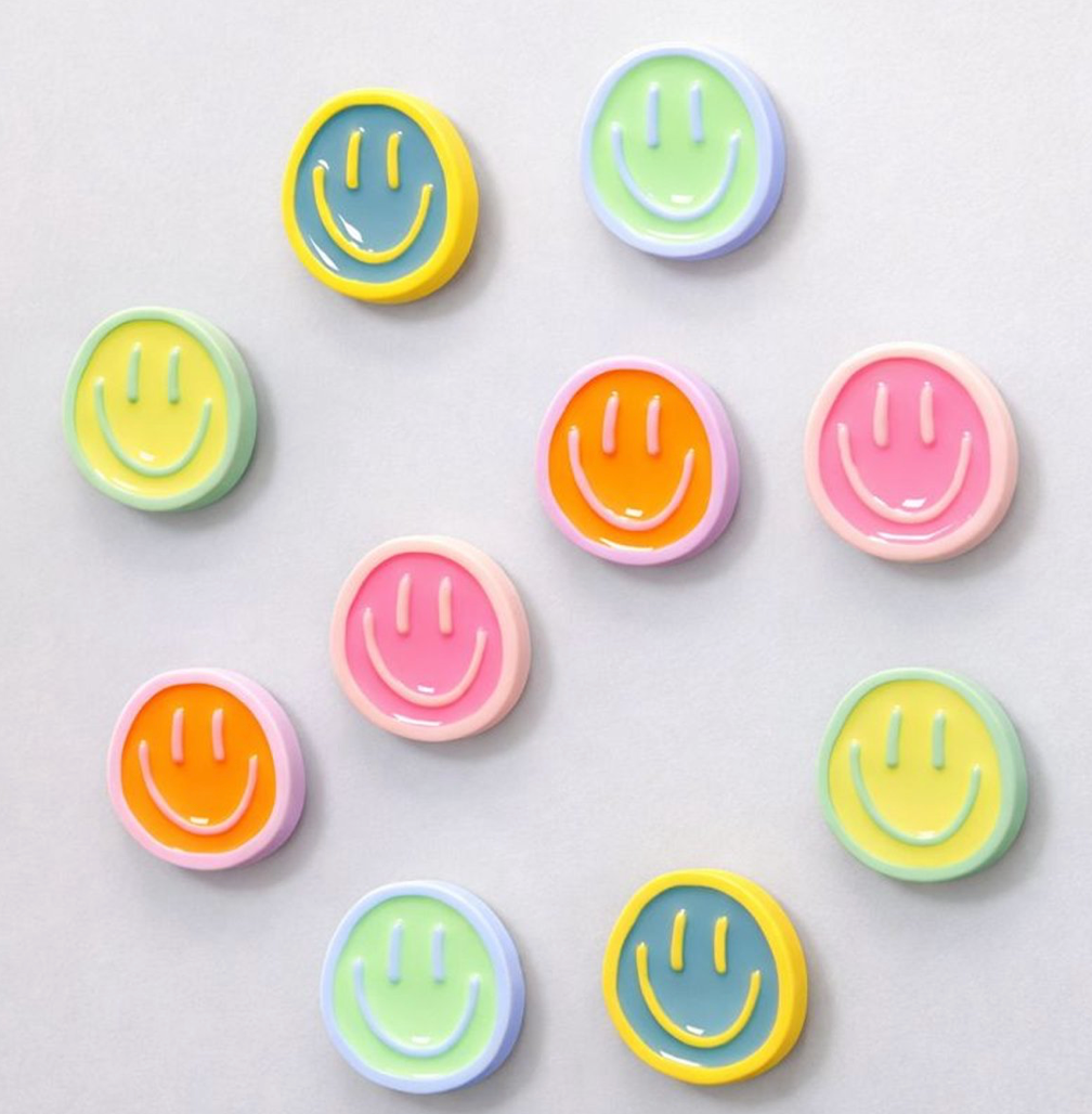 Inhoud: 10 stuks Smileys magneten 2,3 cm kleuren mix (zoals afbeelding)